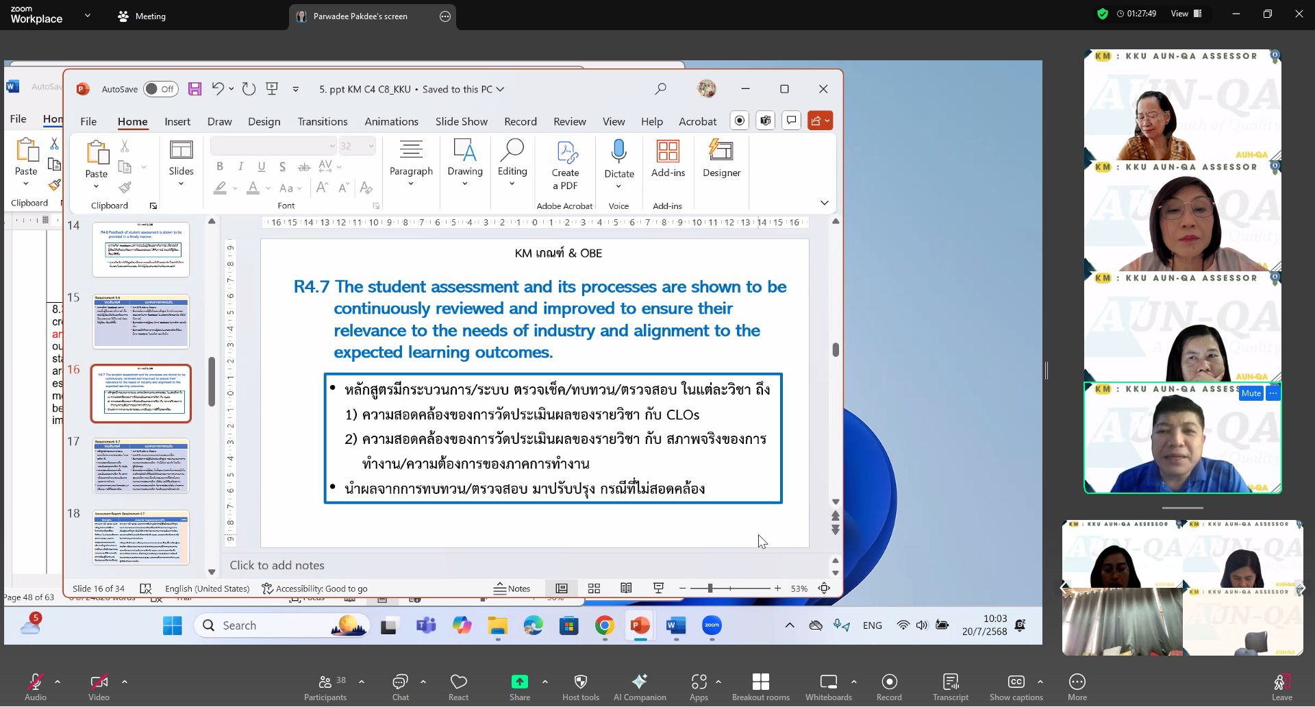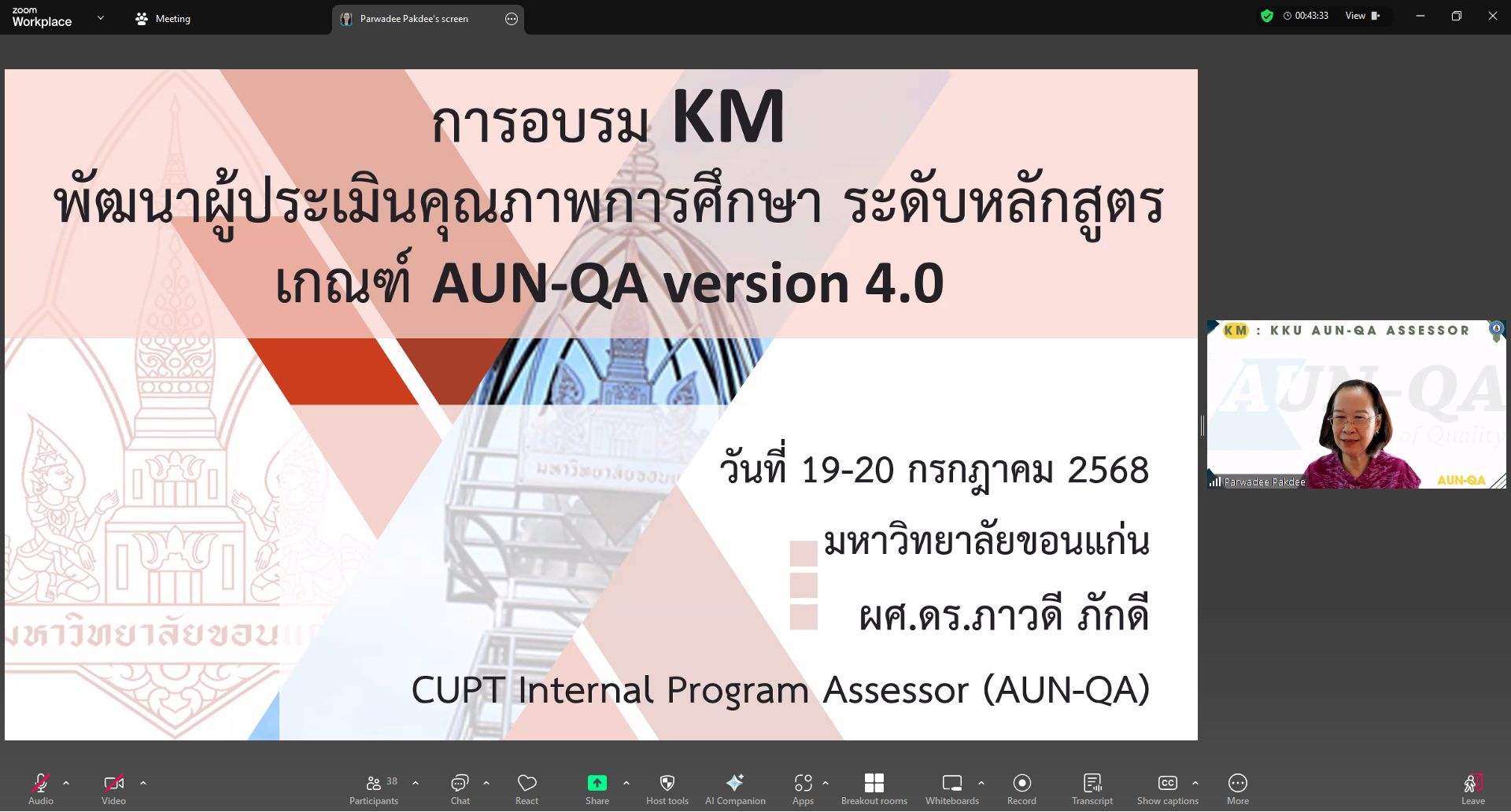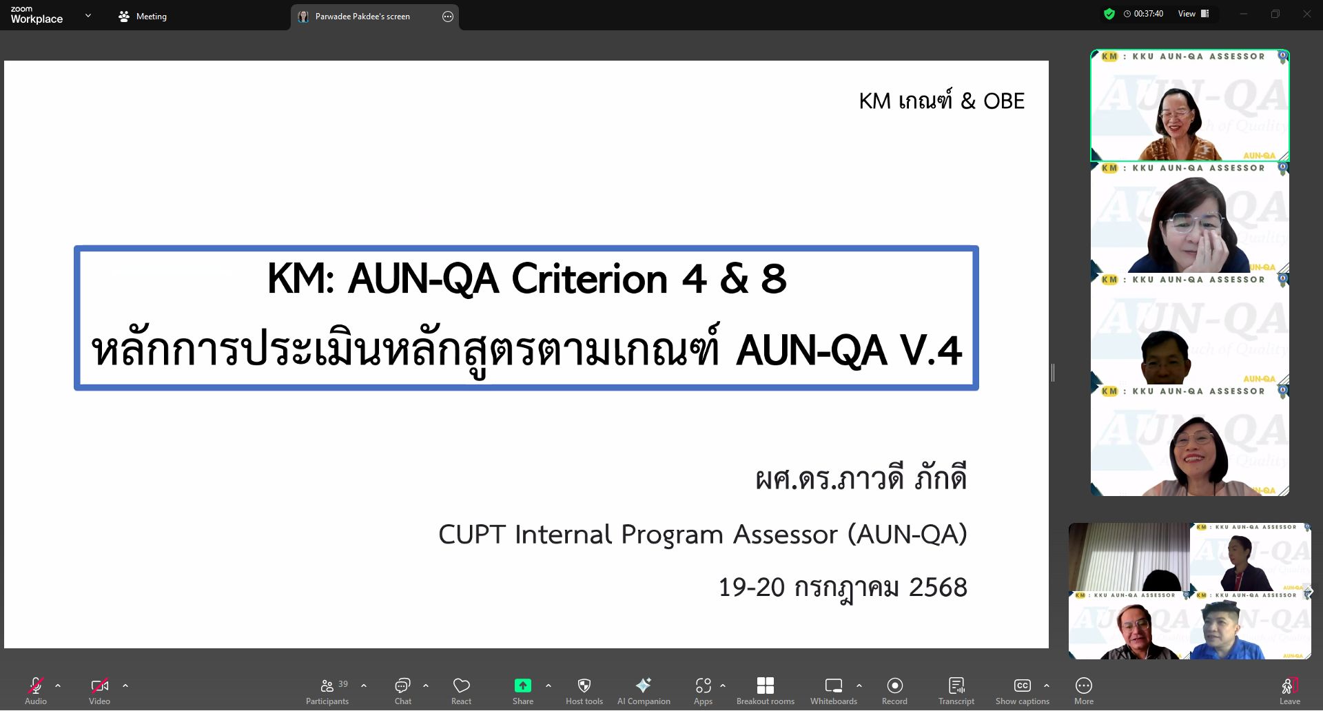 เมื่อวันที่ 19-20 กรกฎาคม 2568 กองพัฒนาคุณภาพการศึกษา ได้จัดโครงการสัมมนาผู้ประเมินคุณภาพระดับหลักสูตร ด้วยเกณฑ์ AUN-QA ครั้งที่ 3 (KM) ออนไลน์ผ่านระบบ Zoom Meeting โดยได้รับเกียรติจาก ผศ.นพ. ศักดา วราอัศวปติ ผู้ช่วยอธิการบดีฝ่ายวางแผนและพัฒนาคุณภาพ กล่าวเปิดโครงการและกล่าวถึงความสำคัญในการขับเคลื่อนการยกระดับคุณภาพหลักสูตรให้ได้มาตรฐานในระดับสากล โดยเฉพาะอย่างยิ่งการมีผู้ประเมินที่มีความรู้และมีทักษะในการสะท้อนผลที่มีคุณภาพและสามารถนำไปใช้ในการยกระดับคุณภาพหลักสูตรได้จริงถือเป็นสิ่งที่จำเป็นและมีความสำคัญยิ่ง