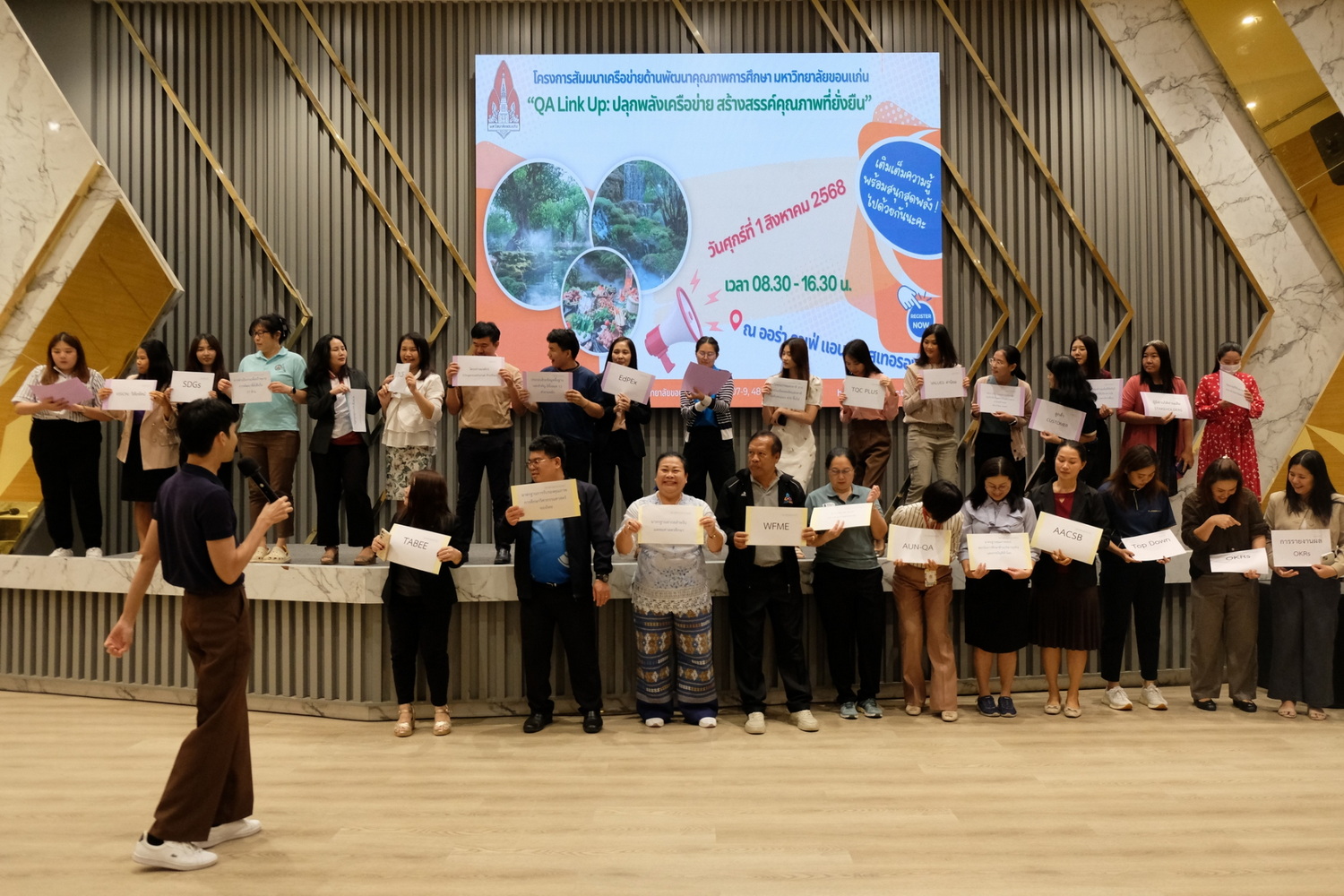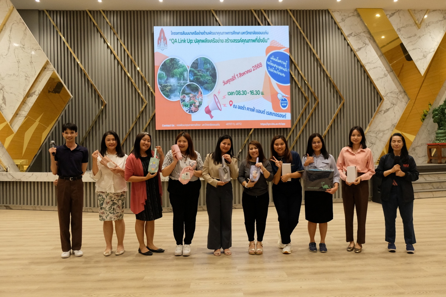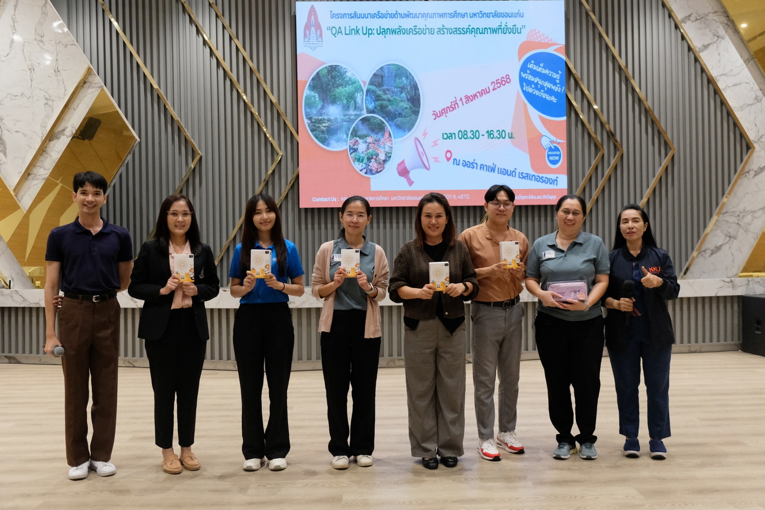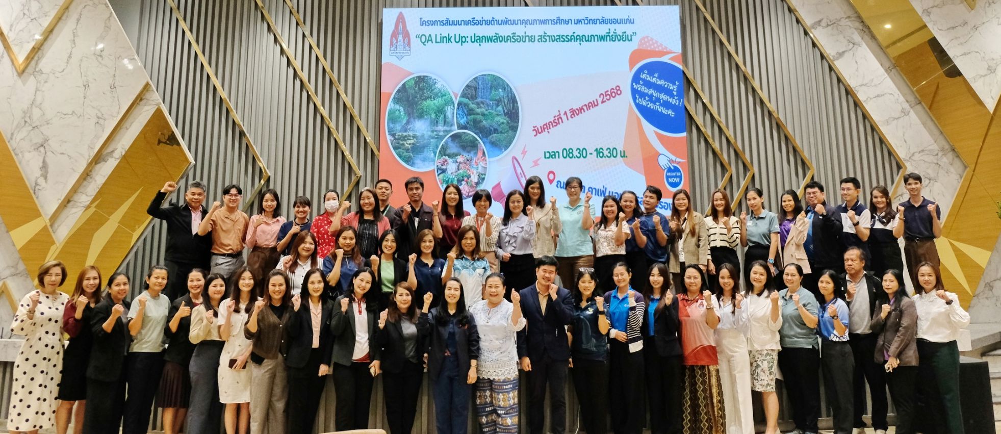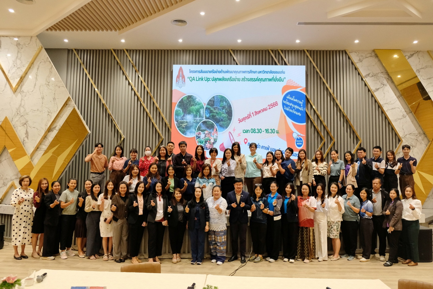 ในวันที่ 1 สิงหาคม 2568 เวลา 08.30-16.30 น. กองพัฒนาคุณภาพการศึกษา มหาวิทยาลัยขอนแก่น ได้จัดโครงการสัมมนาเครือข่ายด้านพัฒนาคุณภาพการศึกษา มหาวิทยาลัยขอนแก่น "QA Link Up: ปลุกพลังเครือข่าย สร้างสรรค์คุณภาพที่ยั่งยืน" ขึ้น ณ ออร่า คาเฟ่ แอนด์ เรสเทอรองท์ จังหวัดขอนแก่น โดยมีวัตถุประสงค์เพื่อเป็นการส่งเสริมและพัฒนาศักยภาพเครือข่ายผู้ปฏิบัติงานด้านประกันคุณภาพให้เกิดองค์ความรู้และมีทักษะที่จำเป็นในการปฏิบัติงาน ตลอดจนเกิดกระบวนการแลกเปลี่ยนเรียนรู้ร่วมกันระหว่างส่วนงาน/หน่วยงาน จนสามารถดำเนินงานได้อย่างเป็นระบบและมีประสิทธิภาพ รวมถึงรับฟังสภาพปัญหา อุปสรรค และข้อเสนอแนะในการดำเนินงาน เพื่อวางแผนการดำเนินงานขับเคลื่อนคุณภาพการศึกษาในแต่ละระดับร่วมกัน