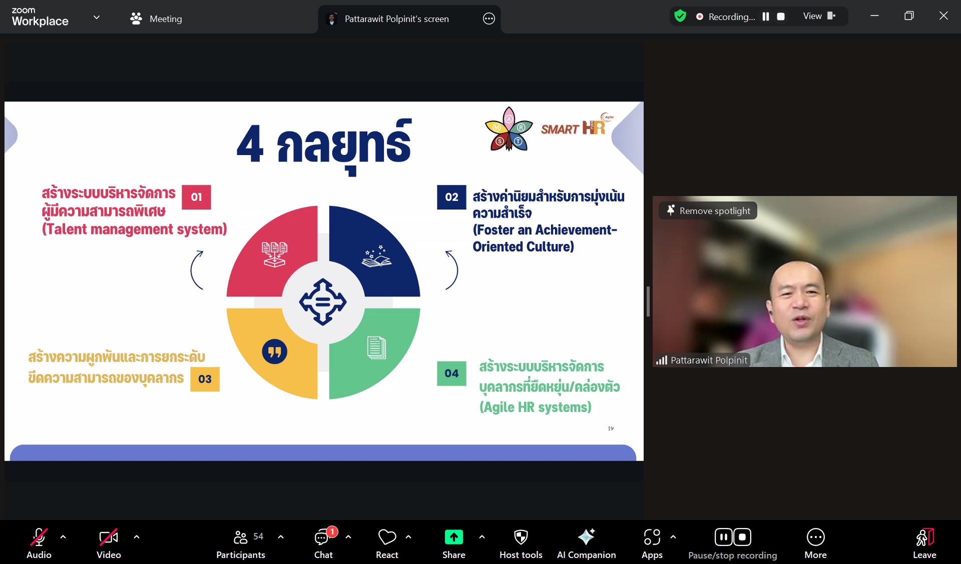 โดยการบรรยายในครั้งนี้ มีหัวข้อที่น่าสนใจมากมาย อาทิเช่น สภาวะแวดล้อมด้านบุคลากร ขีดความสามารถและอัตรากำลังบุคลากร การจัดการความเปลี่ยนแปลงด้านบุคลากร บรรยากาศในการทำงานของบุคลากร สภาพแวดล้อมของการทำงาน นโยบายและสิทธิประโยชน์สำหรับบุคลากร ความผูกพันของบุคลากร การประเมินความผูกพันของบุคลากร วัฒนธรรมองค์กร ความเสมอภาคและการให้เข้ามามีส่วนร่วม เป็นต้น ซึ่งถือว่ามีความสำคัญอย่างยิ่งในการสร้างความได้เปรียบในการแข่งขันขององค์กร อันจะนำไปสู่การใช้ศักยภาพของบุคลากรอย่างเต็มที่ เพื่อสนับสนุนพันธกิจและเป้าหมายขององค์กร โดยในหมวดนี้จะมีความสอดคล้องเชื่อมโยงกับหมวด 7 ผลลัพธ์ 7.3 ผลลัพธ์ด้านบุคลากร ซึ่งครอบคลุมมิติต่างๆ เช่น ด้านขีดความสามารถและอัตรากำลัง ด้านสุขภาพความปลอดภัย ค่าตอบแทนและสิทธิประโยชน์ ด้านความผูกพัน ตลอดจนด้านการพัฒนาบุคลากรและผู้นำ เป็นต้น ทั้งนี้ มีผู้สนใจเข้าร่วมอบรมจำนวนทั้งสิ้น 70 คน