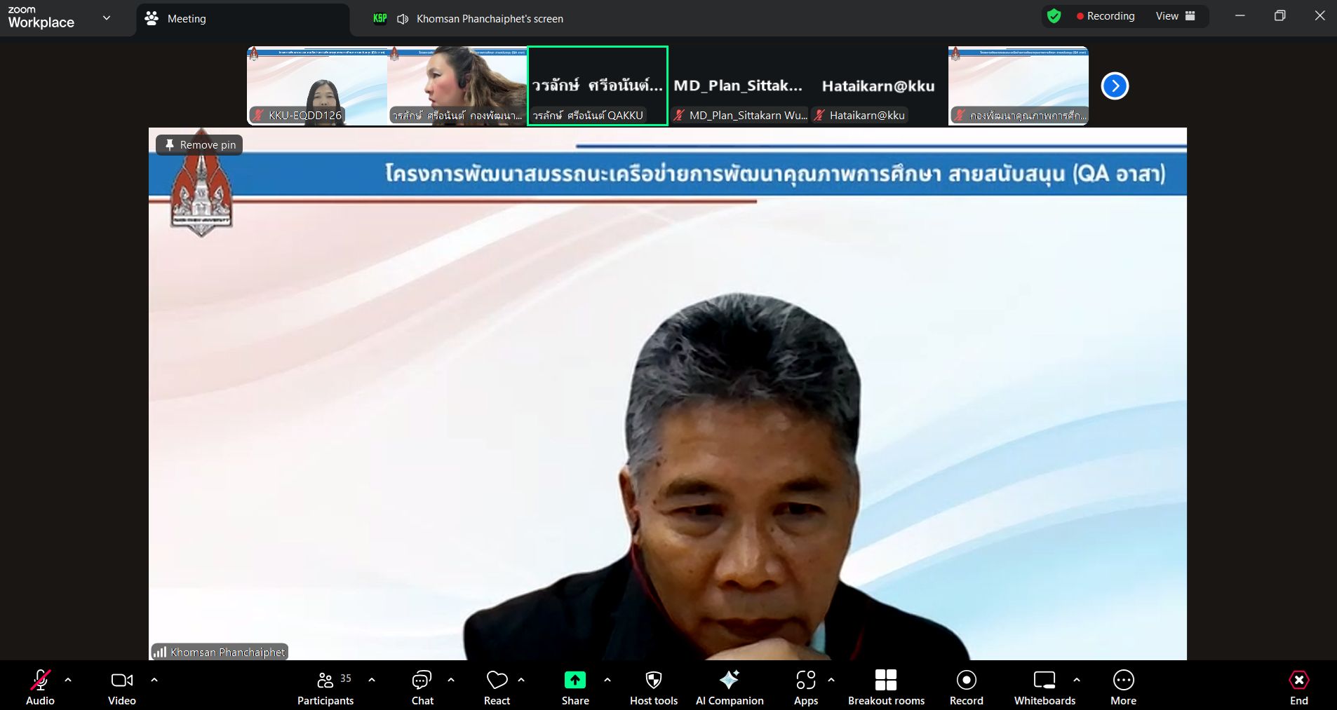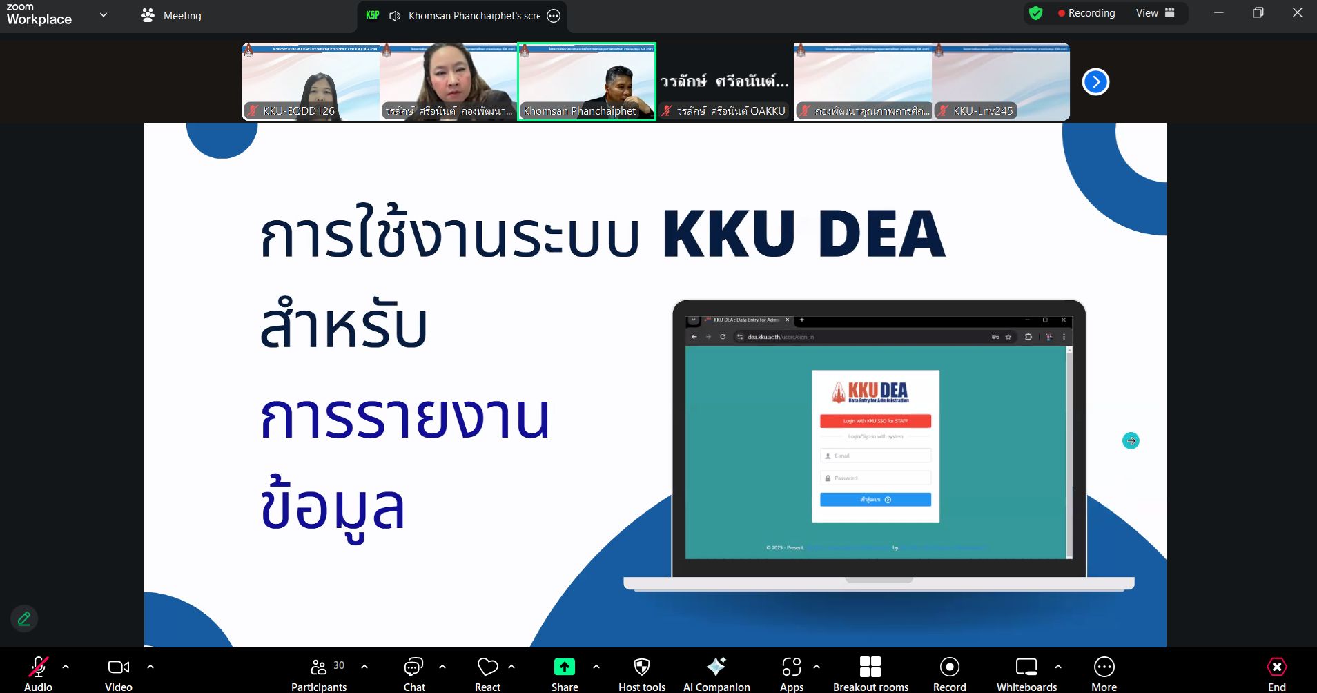พร้อมกันนี้ นายคมสัน พันธุ์ชัยเพชร นักเทคโนโลยีสารสนเทศ ได้เป็นวิทยากรถ่ายทอดองค์ความรู้เกี่ยวกับการใช้งานระบบสารสนเทศเพื่อการประกันคุณภาพ KKU DEA (Data Entry for Administration) และ KKU DNA (Data Network for Administration) ซึ่งเป็นเครื่องมือสำคัญในการรวบรวม วิเคราะห์ และรายงานผลข้อมูลด้านคุณภาพการศึกษาอย่างมีประสิทธิภาพ