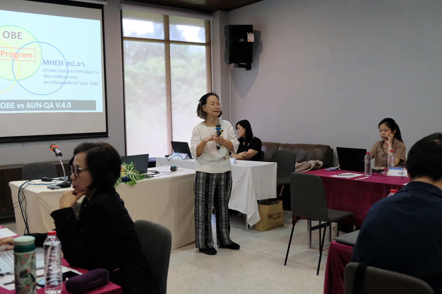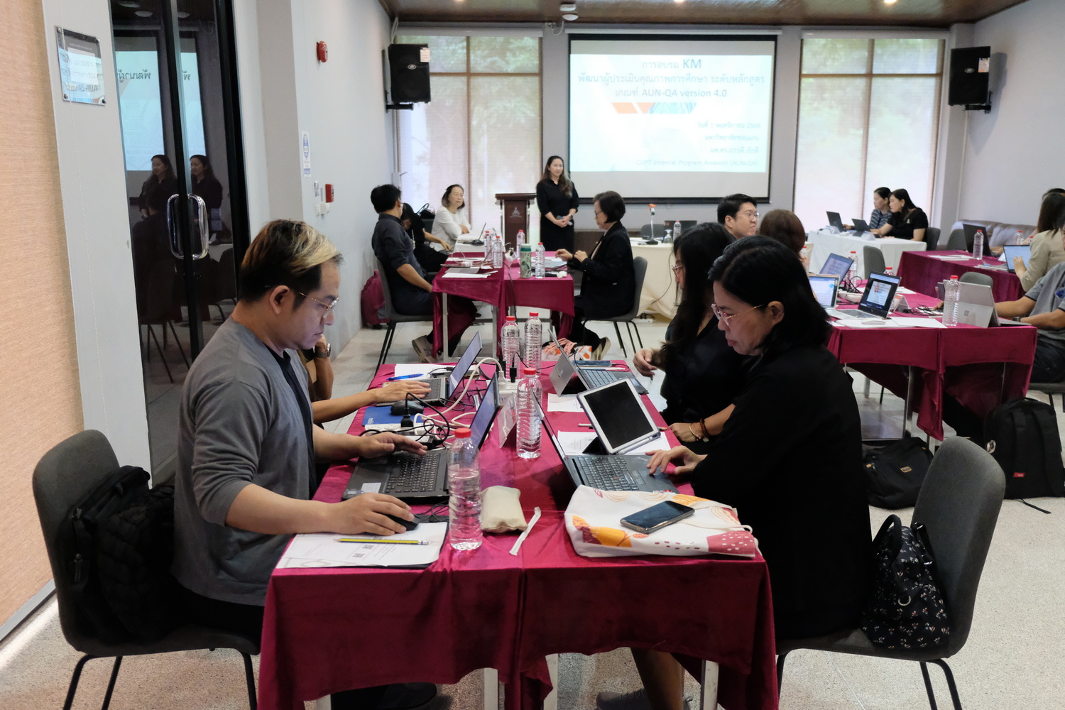 โดยการอบรมครั้งนี้ ได้รับเกียรติจาก ผศ.ดร. ภาวดี ภักดี รศ.ดร.นันทรัตน์ โฆมานะสิน และ ผศ.ดร.กันยารัตน์ เควียเซ่น และ ผศ.ดร.สุกัญญา เรืองสุวรรณ ซึ่งทั้ง 4 ท่านเป็นผู้ตรวจประเมินคุณภาพหลักสูตร ด้วยเกณฑ์ AUN-QA Version 4.0 ที่ขึ้นทะเบียนกับที่ประชุมอธิการบดีแห่งประเทศไทย (ทปอ.) มาถ่ายทอดองค์ความรู้และประสบการณ์ตรงในการตรวจประเมินคุณภาพการศึกษา ระดับหลักสูตร ด้วยเกณฑ์ AUN-QA Version 4.0 กิจกรรมเน้นที่การทำความเข้าใจให้ตรงกันใน ประเมินในแต่ละ Criteria 1-4 การให้คะแนน การจัดทำรายงานป้อนกลับที่มีคุณภาพ และการให้ข้อเสนอแนะที่เป็นประโยชน์ต่อการปรับปรุงพัฒนา รวมถึงเปิดโอกาสผู้เข้าอบรมได้แลกเปลี่ยนเรียนรู้ในประเด็นที่สงสัย ในการตรวจประเมินฯ ด้วยเกณฑ์ AUN-QA Version 4.0 โดยมีอาจารย์เข้าร่วมการอบรม จำนวนทั้งสิ้น 21 คน เพื่อจะได้ขึ้นทะเบียนเป็นผู้ตรวจประเมินฯ ระดับหลักสูตร ด้วยเกณฑ์ AUN-QA Version 4.0 ของมหาวิทยาลัยต่อไป