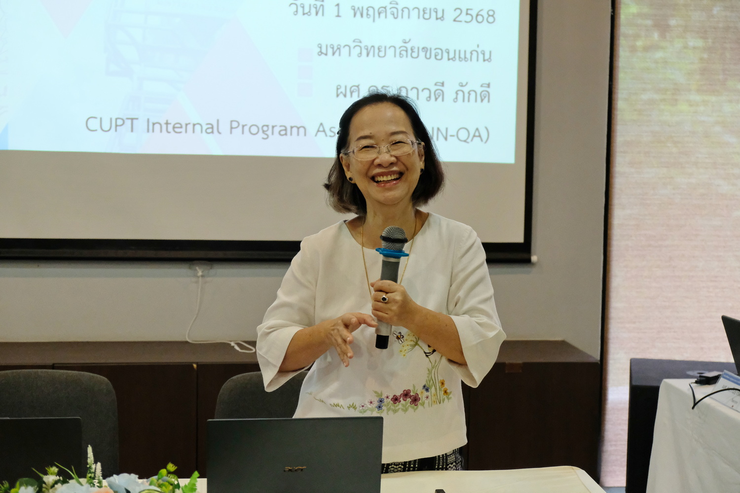 เมื่อวันที่ 1 พฤศจิกายน 2568 กองพัฒนาคุณภาพการศึกษา ได้จัดโครงการการอบรมเชิงปฏิบัติการผู้ประเมินคุณภาพระดับหลักสูตร ด้วยเกณฑ์ AUN-QA ณ ห้องเจิมขวัญ โรงแรมบายาสิตา มหาวิทยาลัยขอนแก่น โดยได้รับเกียรติจาก ผศ.นพ. ศักดา วราอัศวปติ ผู้ช่วยอธิการบดีฝ่ายวางแผนและพัฒนาคุณภาพ กล่าวเปิดโครงการและกล่าวถึงความสำคัญในการขับเคลื่อนการยกระดับคุณภาพหลักสูตรให้ได้มาตรฐานในระดับสากล โดยเฉพาะอย่างยิ่งการมีผู้ประเมินที่มีความรู้และมีทักษะในการสะท้อนผลที่มีคุณภาพและสามารถนำไปใช้ในการยกระดับคุณภาพหลักสูตรได้จริงถือเป็นสิ่งที่จำเป็นและมีความสำคัญยิ่ง